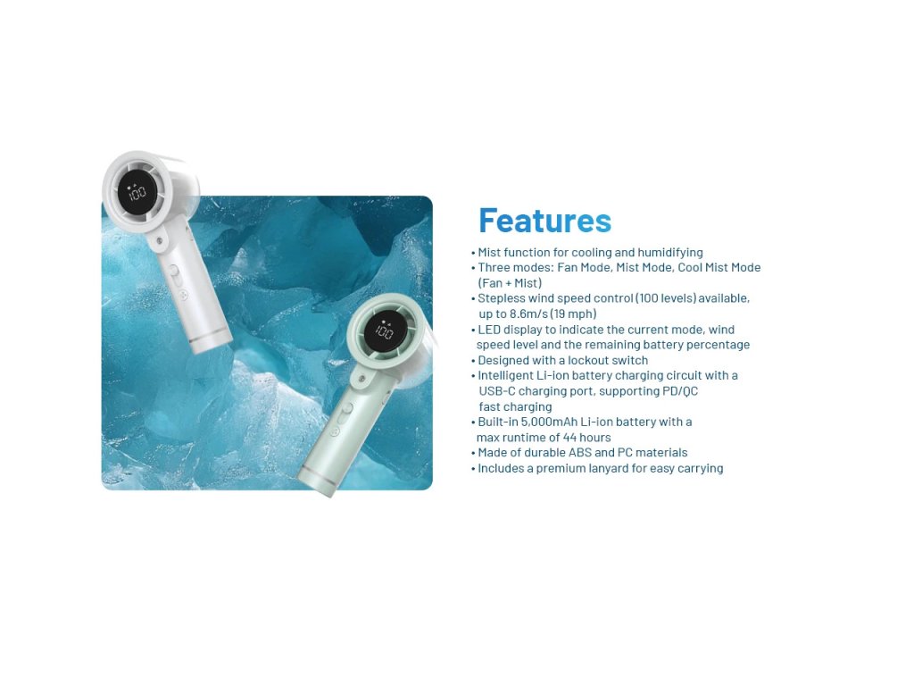 ❄️NITECORE izzCool™ 20 Pro Elektrický cestovný ventilátor s vodnou hmlou