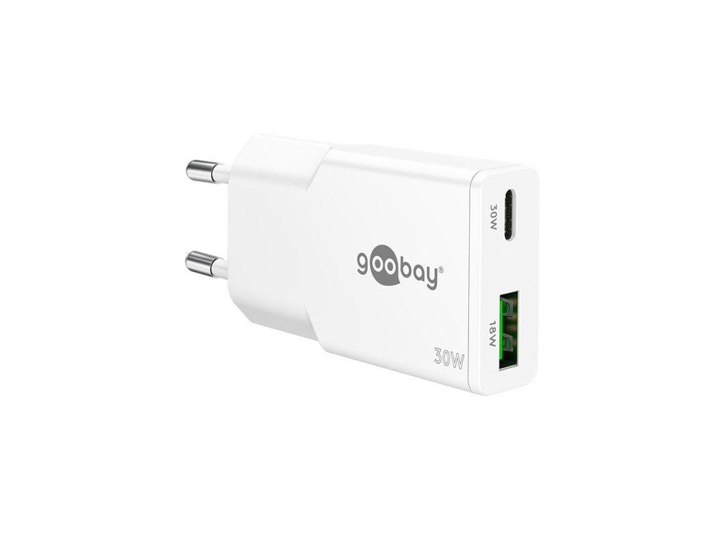 Goobay GaN Sieťový napájací adaptér USB-C + USB-A (30W)