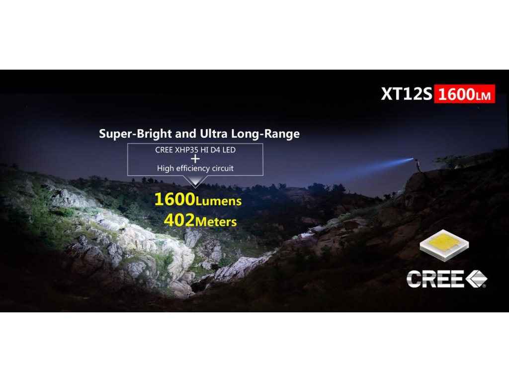 XT12S má v hlave svietidla osadenú výkonnú Cree XHP35 HI D4 LED. Poskytuje maximálny výkon 1600 lumenov a dosvieti na max. vzdialenosť 402m. Výkon 1600lm je možné dosiahnuť, len s priloženým akumulátorom Klarus 18GT-36 s kapacitou 3600mAh, ktorý je špeciálne navrhnutý pre dosahovanie maxima, ktoré svietidlá dokážu dať. Telo je vyrobené zo zliatiny tvrdeného leteckého hliníka 6061-T6 HAIII s anodizovanou úpravou. Pre pevný a bezpečný úchop, slúži texturovaná úchopová časť. Pre zavesenie svietidla, napr. za opasok nohavíc, slúži pevný kovový klip, ktorý sa nachádza v balení. Zadný patentovaný dvojitý taktický spínač, slúži pre okamžitú aktiváciu režimu STROBO alebo Ultra nízkeho režimu (v závislosti od použitého módu - Taktic/ Outdoor) jediným dotykom spínača. Telo je špeciálne konštruované pre priame nabíjanie akumulátora v tele svietidla, bez nutnosti vybratia akumulátora zo svietidla. Výhodou Klarus XT12S je odnímateľný patentovaný magnetický konektor. Slúži pre rýchle pripojenie USB kábla a pre pohotové nabitie svietidla. Nabíjací kábel môže byť rýchlo a bezpečne odstránený, čo je efektívne hlavne pre použitie v situáciách, kedy potrebujete rýchlo reagovať. Používa štandardný USB port pre nabíjanie, takže môžete nabíjať doma, v kancelárii, na letisku, v aute a všade tam, kde je USB port k dispozícií. Na konci svietidla sú spomínané 2 taktické spínače a plnia 2 funkcie. Spustenie priameho režimu STROBO, to znamená, že STROBO môže byť okamžite spustené, či je svietidlo zapnuté alebo vypnuté. Nasledovná funkcia je prepínanie jednotlivých režimov v pustenom stave. Priložený nabíjateľný akumulátor Klarus 3600mAh 3.7V Li-ion, používa Samsung jadro, čo je zárukou kvality a dlhej životnosti (technológia sa používa aj pri elektrických vozidlách TESLA). Na ráme reflektora je naskrutkovaný odnímateľný prstenec z nerezovej ocele. Chráni objektív, ale môže byť použitý aj pri sebaobrane. Sklíčko je potiahnuté špeciálnou AR vrstvou, ktorá bráni poškriabaniu. Klarus XT12S je skvelé taktické svietidlo, ktoré sa hodí pre ozbrojené zložky, políciu. Svoje uplatnenie však nájde aj pre outdoorových nadšencou, turistou.