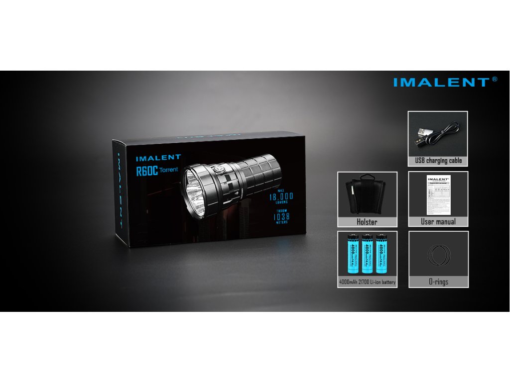 LED baterka Imalent R60C Torrent, 18000lm+3x Li-ion 21700mAh 4000mAh 3,6V, USB nabíjateľné