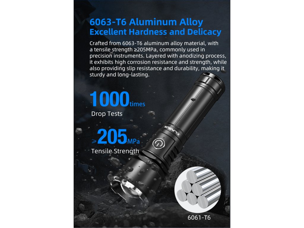 Klarus A3 má IPX6 a pádovú odolnosť 1 m. Vhodná je na turistiku, lov, rybárčenie, kemping, záchranné a bezpečnostné účely.