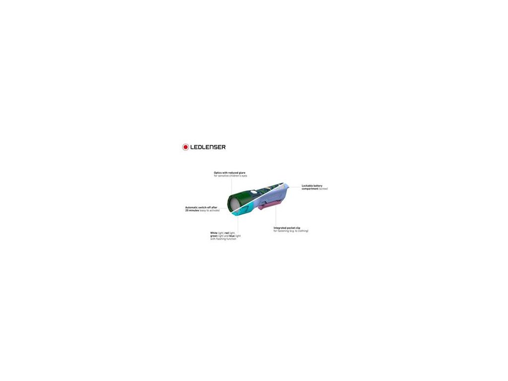 Nechejte děti objevovat svět s jejich první opravdovou baterkou. LEDLESNER KIDBEAM4 je ruční svítilna speciálně určená pro děti a jejich citlivé oči. Speciální technologie zajišťují, že je světelný tok pro děti naprosto bezpečný, nehrozí poškození zraku, zároveň však dostatečně výkonný a díky různým barvám světla i zábavný a multifunkční. Spolehlivý a bezpečný parťák pro děti na dětských táborech, v kempech či na výletech do přírody. Na výběr máte mezi chlapeckou variantou (s motivem dinosaurů) a dívčí (motiv duhy). Napájeno dvěma tužkovými bateriemi AAA. bílé, ale také červené, zelené a modré světlo s funkcí blikání bezpečně uzamykatelný bateriový box optika omezující oslnění integrovaný klip pro připevnění k batohu či oblečení automatické vypnutí po dvaceti minutách svíceníObsah balení: svítilna, set dvou tužkových baterií AAAPARAMETRYSvětelný tok: 70/10 lmDosah světla: 12/5 mDoba svícení: 4/18 hodDélka: 120 mmHmotnost: 72 g (vč. baterií)Baterie: 2x AAALED: Power LEDDobíjení: NeCertifikát odolnosti: IP44CRI (Color rendering index): 70Teplota světla: 6000 - 6500 KTest pádu z výšky: 1,5 mbarvy světla: bílá, červená, zelená, modráDodatočné parametre