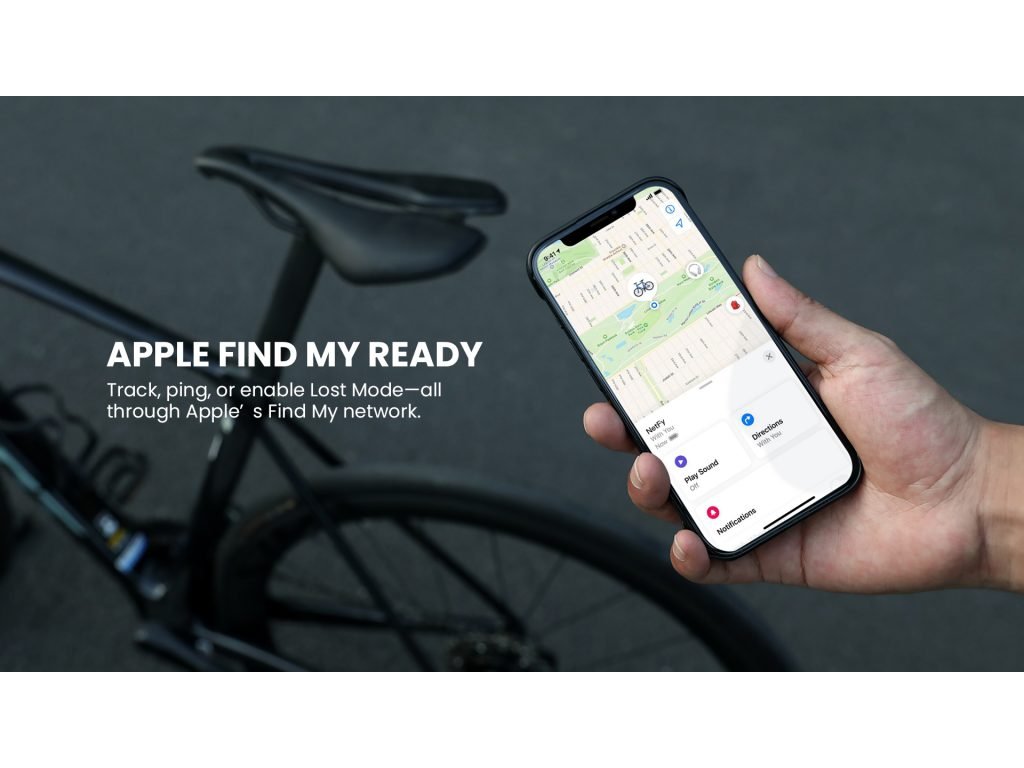 - 🍎 Integrácia s Apple Find My sieťou: Sledujte bicykel v reálnom čase cez iPhone, iPad, Mac alebo Apple Watch – využíva globálnu crowdsourcingovú sieť miliónov Apple zariadení