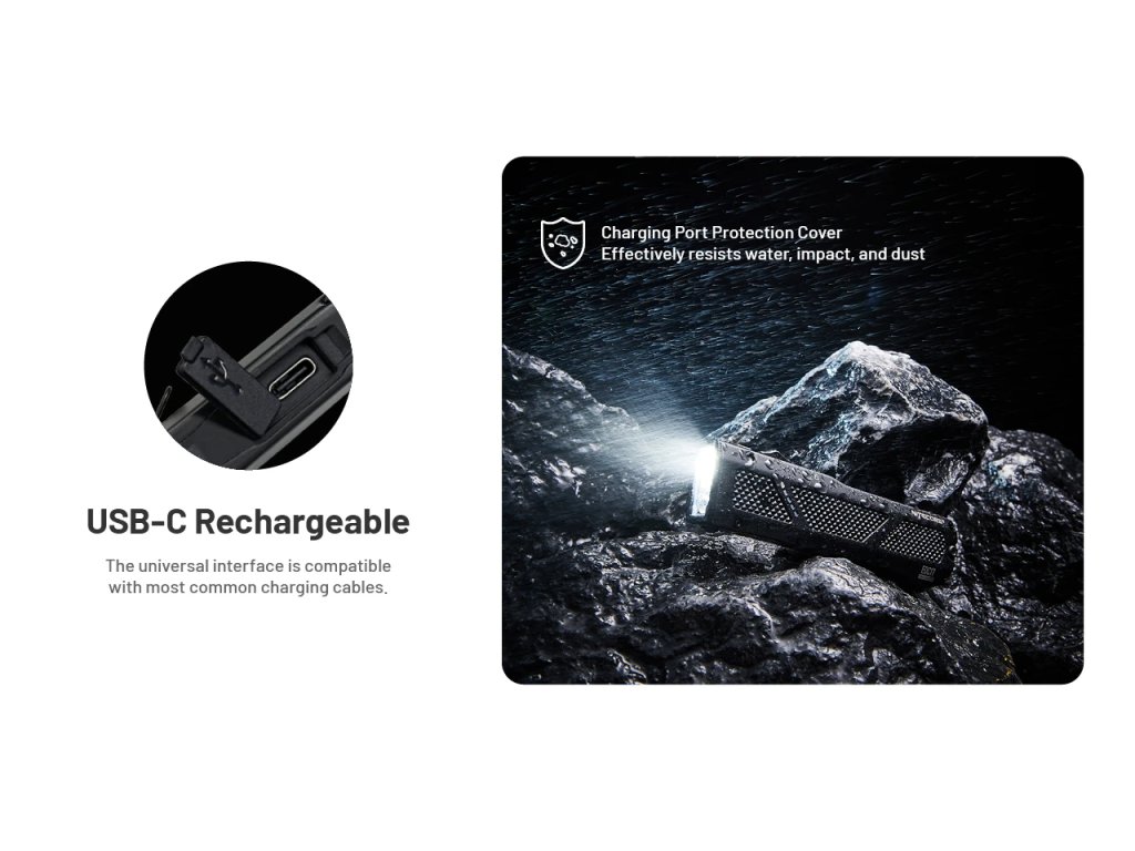 - ATR - Advanced Temperature Regulation: Patentovaný modul (Patent No. ZL201510534543.6) dynamicky upravuje svetelný výkon podľa vnútornej teploty a okolia, čím zabraňuje prehriatiu a udržiava stabilný výkon aj pri dlhodobom použití v HIGH režime.