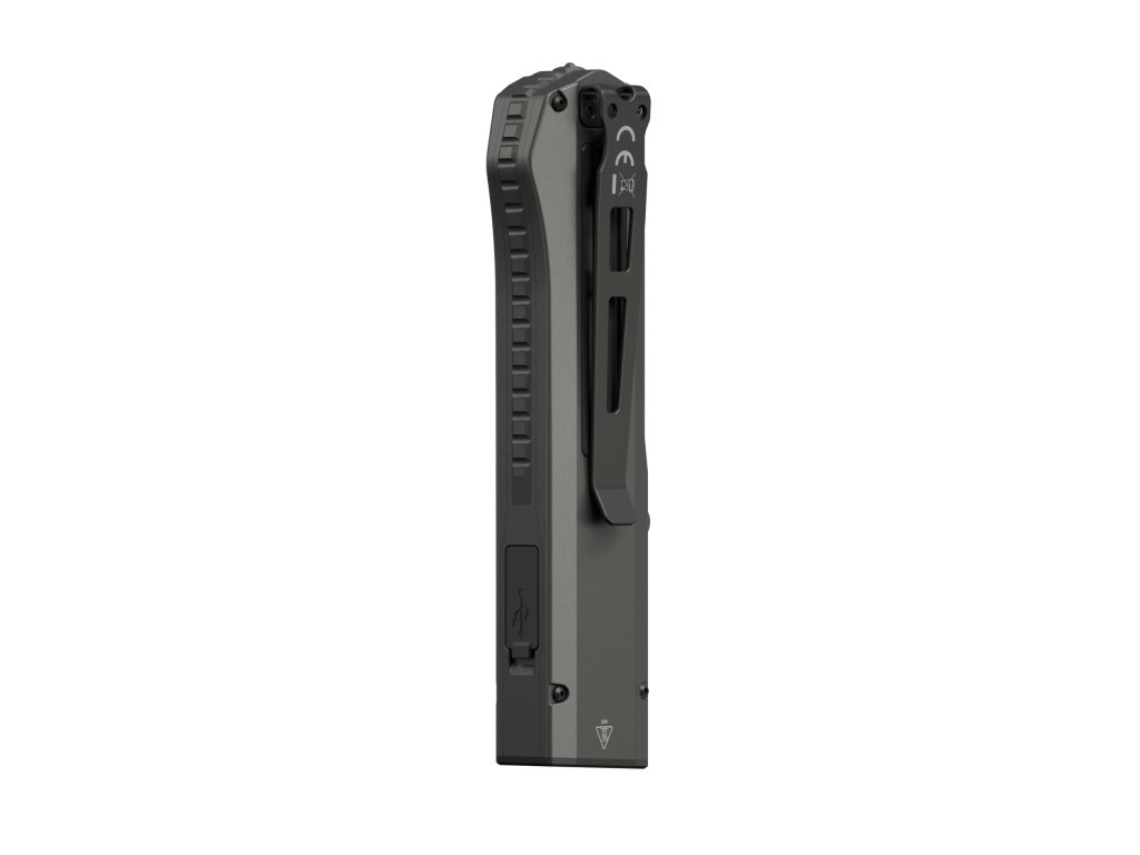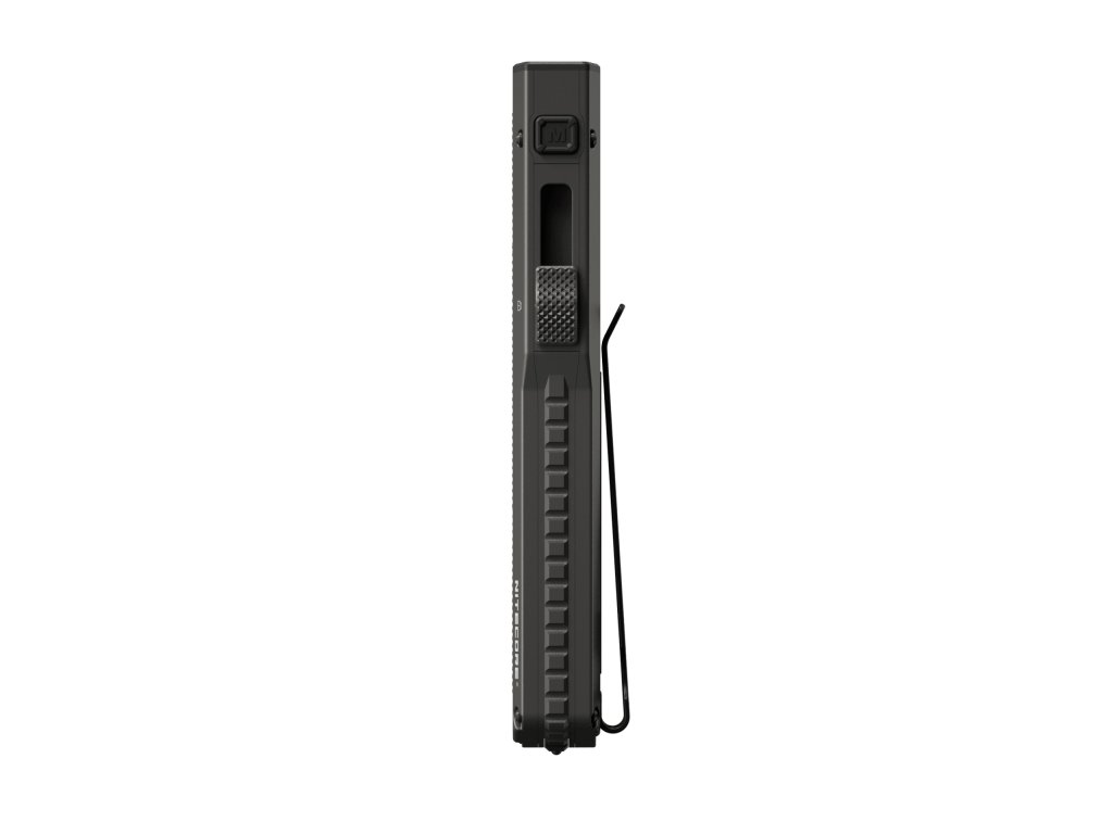 Everyday Carry v meste: Môžem túto baterku nosiť každý deň? Určite áno - ultra tenký profil 16mm a hmotnosť 106g prakticky necítiť vo vrecku. Oceľový klip umožňuje upevnenie na opasok, batoh či tašku. Slide switch s poistkou zabraňuje náhodnému zapnutiu.