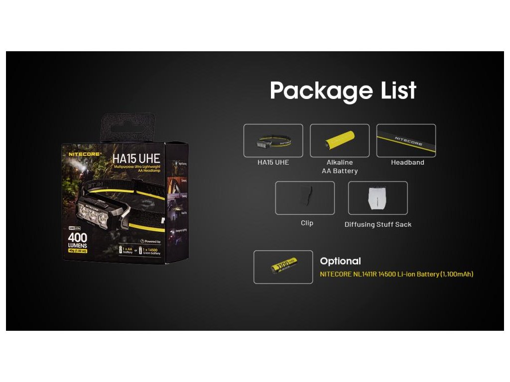 NITECORE HA15 UHE + NL1411R - ultraľahká čelovka s Li-ion akumulátorom