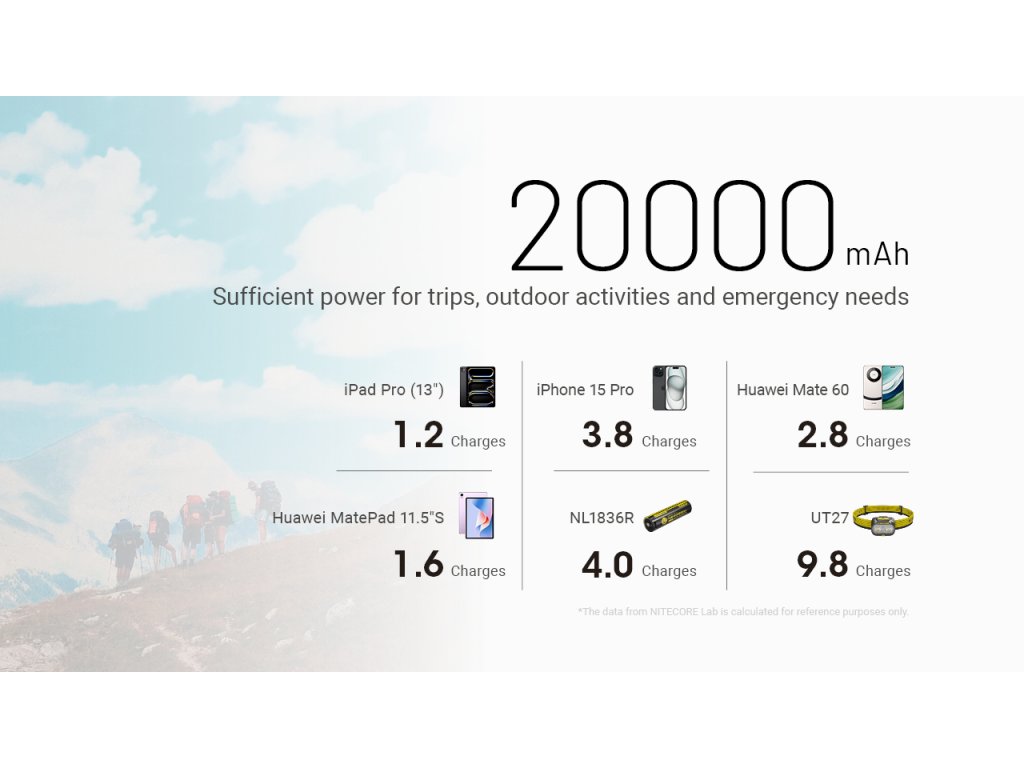 - 1× Nitecore NB20000 Gen3 powerbanka - testovaná a certifikovaná na 500+ nabíjacích cyklov