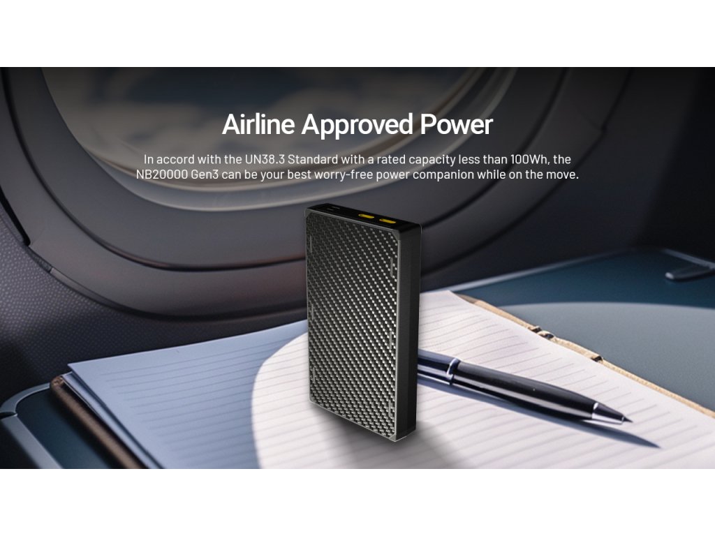 Absolútne áno! S kapacitou 72Wh je NB20000 Gen3 bezpečne pod medzinárodným limitom 100Wh pre príručnú batožinu. Má oficiálnu UN38.3 certifikáciu pre leteckú prepravu a spĺňa IATA predpisy. Tu nájdete kompletný sprievodca pravidlami prepravy powerbaniek v lietadlách.
