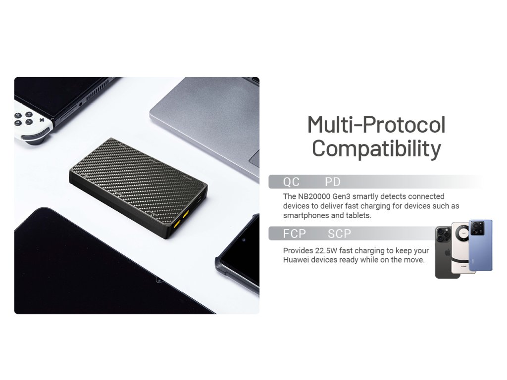 Uprostred víkendovej túry nechcete riešiť technické nastavenia. NB20000 Gen3 všetko vyrieši automaticky - od detekcie malých zariadení ako sú hodinky až po optimalizáciu nabíjania vášho laptopu.