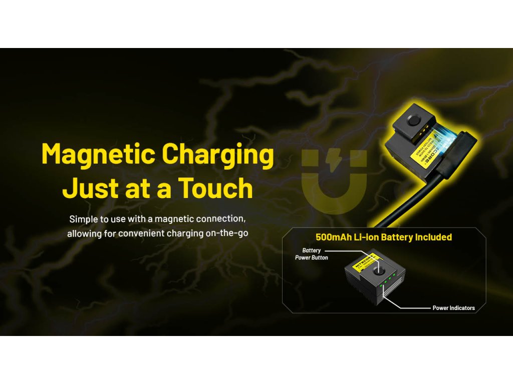 Battery Latch Lock mechanizmus umožňuje výmenu batérie jednoduchým posunutím latch lock - "tak rýchlo ako výmena zásobníka". 500mAh Li-ion batéria sa okamžite uvoľní pre nabíjanie alebo náhradu. Magnetický nabíjací kábel poskytuje pohodlné nabíjanie za pohybu bez potreby výmeny batérie.
