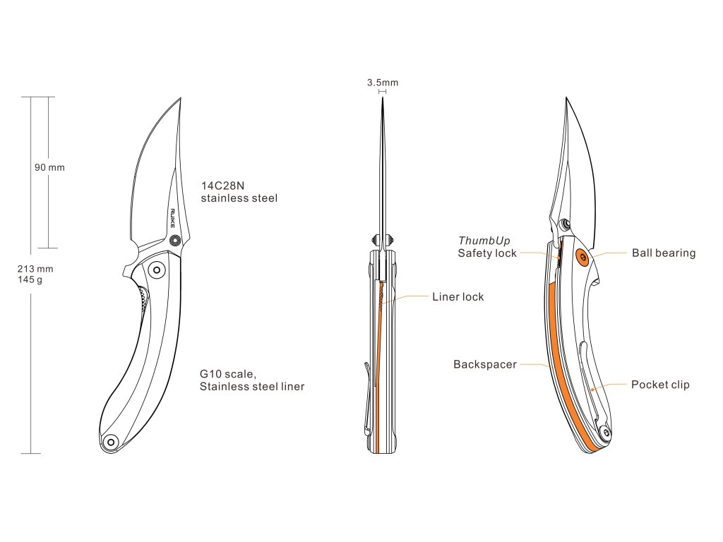 Zatvárací nôž Ruike P155 je vreckový nôž s ergonomicky tvarovanou čepeľou i rukoväťou. Tvarovaná rukoväť dobre padne do ruky a zakrivená čepeľ sa hodí na rezanie rôznych materiálov. Vďaka páčke flipper možno nôž otvoriť pohodlne jednou rukou. Povrch rukoväte je vyrobený z materiálu G10 s protišmykovou úpravou. Proti nechcenému zatvoreniu je nôž vybavený poistkou Liner Lock, ktorú možno pre väčšiu bezpečnosť uzamknúť. Nôž je vybavený sponou na uchytenie vo vrecku a je ideálny na každodenné nosenie (kategória EDC).