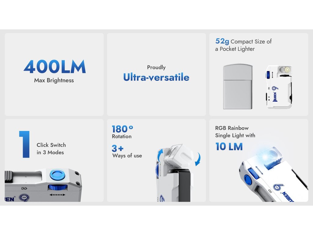 - ⚡ 400 lúmenov v 52 gramoch: Väčšie baterky s rovnakým výkonom vážia 150-200g. G5 ECL váži menej ako priemerný smartfón, ale je výkonnejšia než väčšina vreckových bateriek.