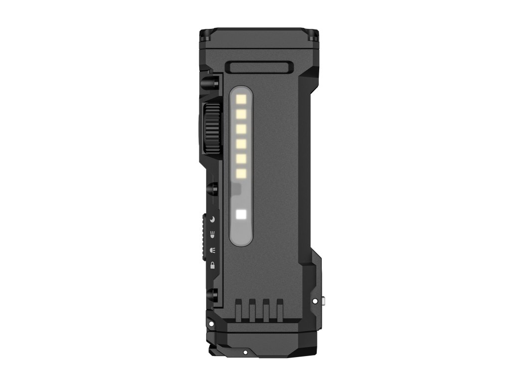 X4 kombinuje 4× automotive-grade 2016 LED (1 spot + 3 flood pre súčasné zamerané aj široké osvetlenie) s výkonom 1500 lúmenov a dosvetom 205 metrov s praktickým bočným svetlom: 6× teplých bielych LED 4000K (100 lúmenov, 8-720 h výdrž) plus 1× RGB LED s 7 farbami (10 lúmenov, 70 h výdrž). Magnetický tailcap, ergonomický taktický spínač, stepless dimming (plynulé stmievanie) a USB-C nabíjanie robia z X4 skutočný švajčiarsky nôž medzi baterkami.