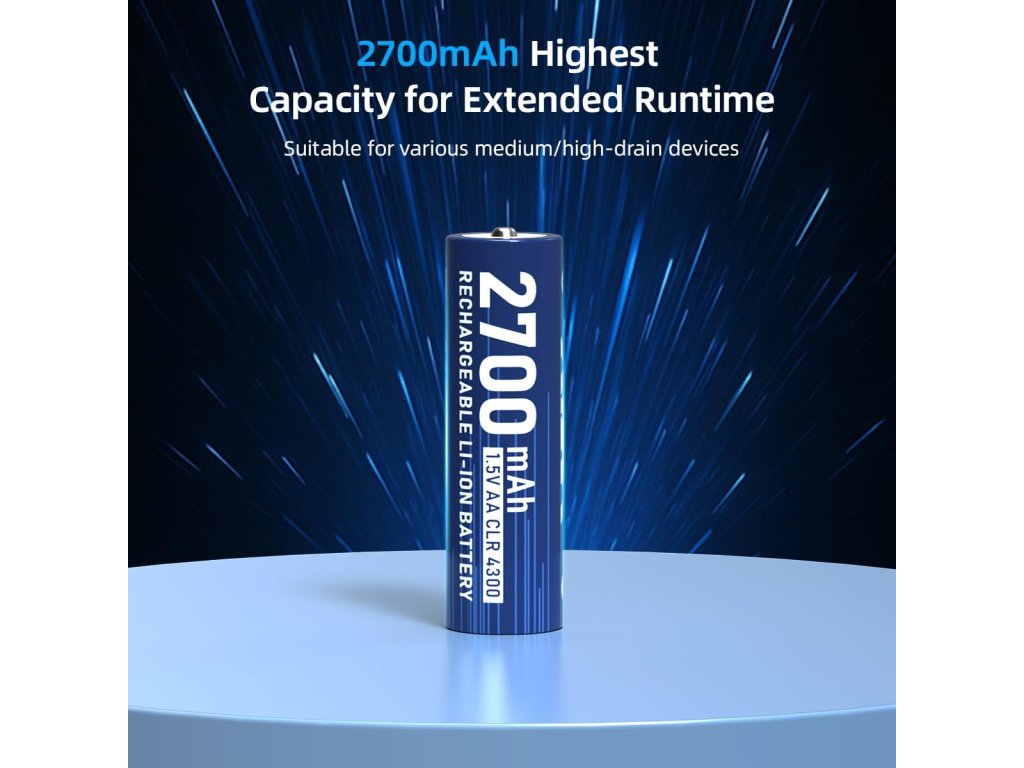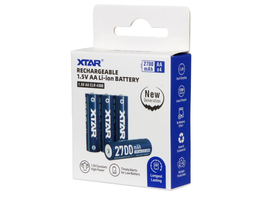 XTAR 1.5V AA CLR 4300 – 4ks nabíjateľná Li-ion batéria 2700 mAh, stabilné napätie