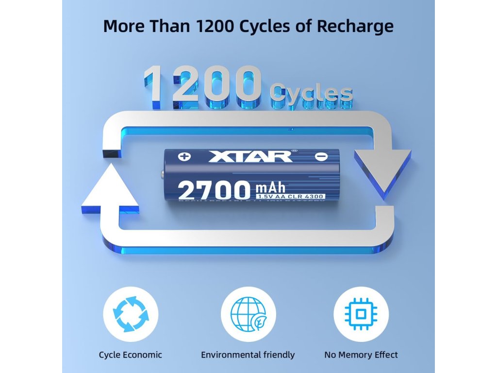 XTAR 1.5V AA CLR 4300 – vysoká kapacita 2700 mAh, stabilné napätie 1.5 V, rýchle nabíjanie a viac než 1200 cyklov. Spoľahlivé riešenie pre trail kamery, smart zariadenia aj profesionálnu techniku.