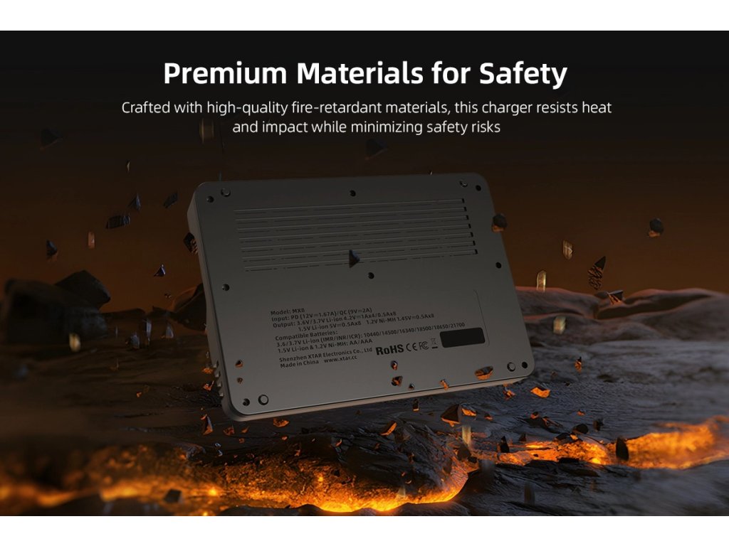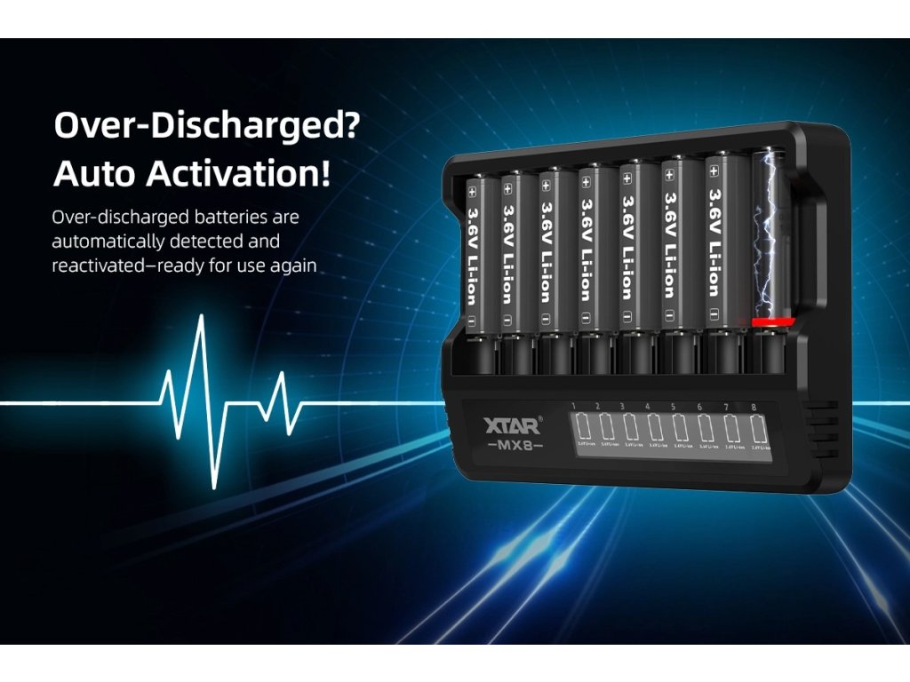 Vlastníte viacero LED bateriek, čeloviek a power toolov? MX8 vám ušetrí priestor aj čas tým, že dokáže nabiť všetky vaše 18650, 21700 aj 26650 články naraz. Vďaka 0V aktivácii zachránite aj tie batérie, ktoré ste si mysleli, že sú už mŕtve. Ideálne pre používateľov značiek ako Olight, Nitecore, Fenix či Acebeam.