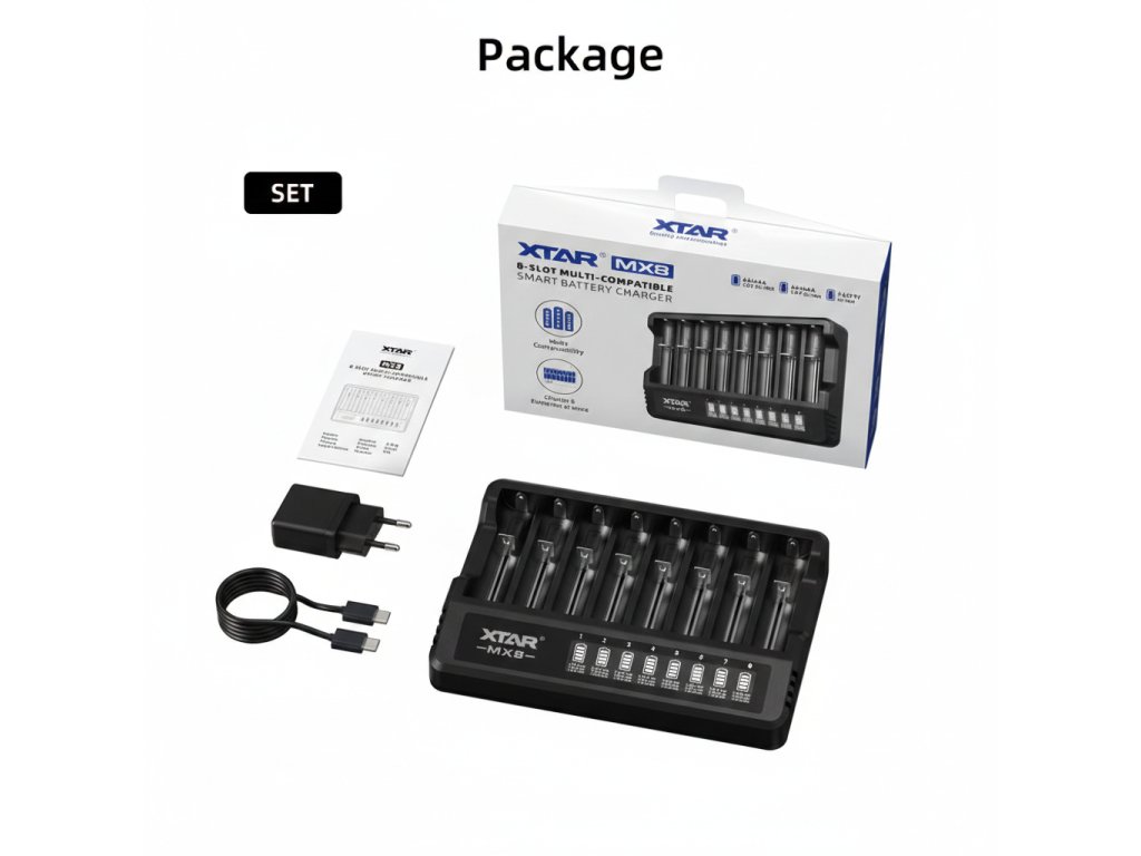 XTAR MX8 multikompatibilná 8-slotová inteligentná smart nabíjačka + XTAR PD20W QC3.0 SET
