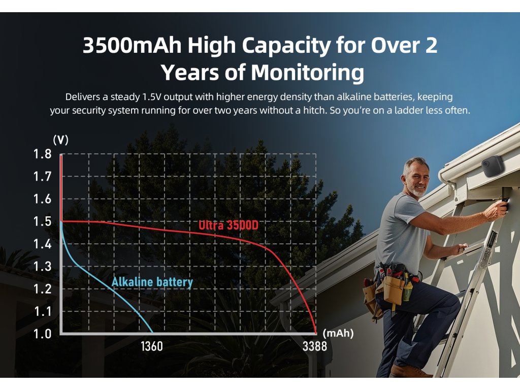 - ✅ Ultra3500D: Udržiava 1,5V až do 95% vybitia, využijete takmer celú energiu = 2× dlhšia reálna výdrž