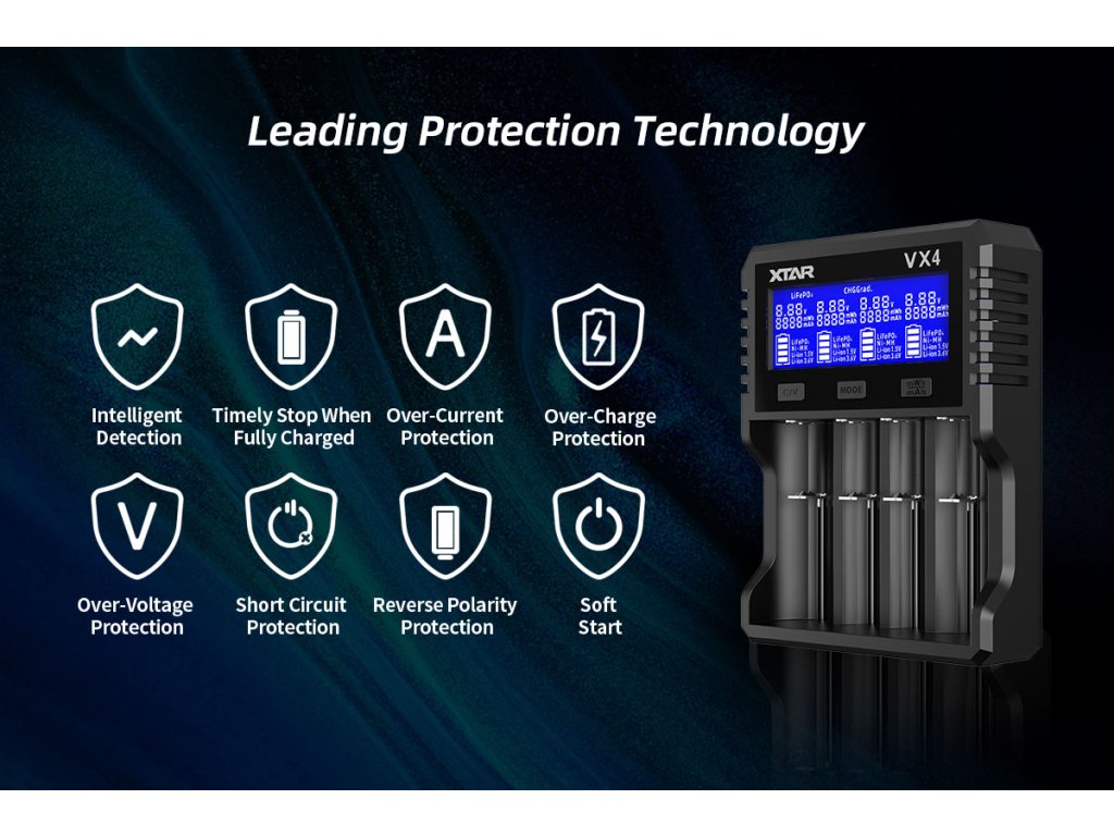XTAR VX4 SET využíva najmodernejšie technológie pre maximálnu efektivitu, bezpečnosť a spoľahlivosť: